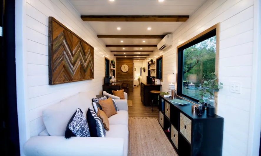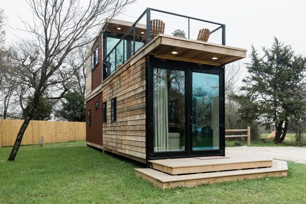 To dom prefabrykowany, wykonany z kontenerów pod klucz. Ma wszystko, czego potrzebujesz: sypialnię ze świetlikiem i jedną łazienkę.