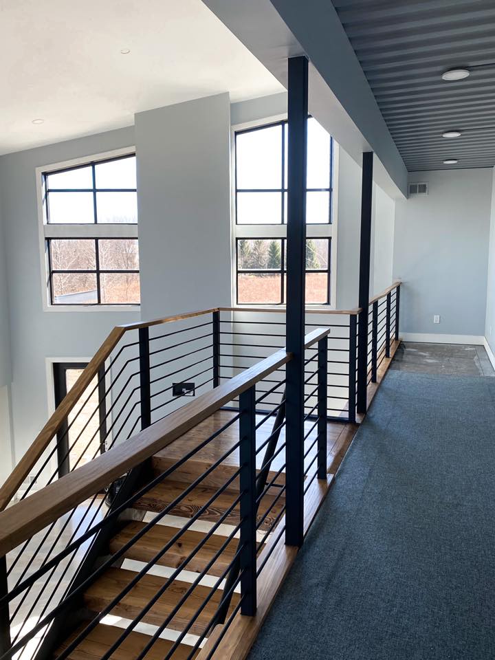 - okna plastikowe z białą ramą PCV, nieotwierane, 2 sztuki (200×100 cm lub 120×120 cm) lub 2 okienka uchylne 50×50 cm (przeszklenie wg normy R43, rozmieszczenie dowolne)